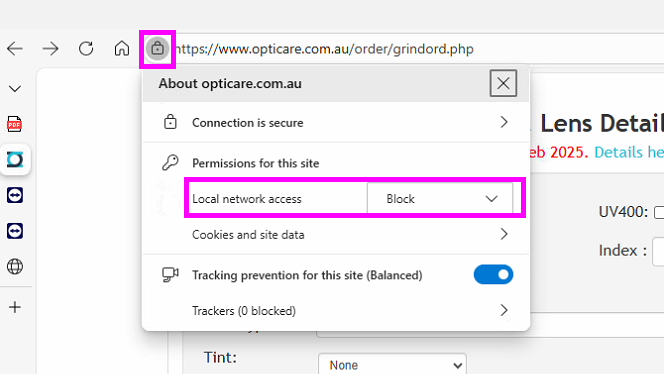 Access to XMLHttpRequest at 'http://127.0.0.1:22144/?a=t&t=17654126966921765412696692' from origin 'https://www.opticare.com.au' has been blocked by CORS policy: Permission was denied for this request to access the `unknown` address space.